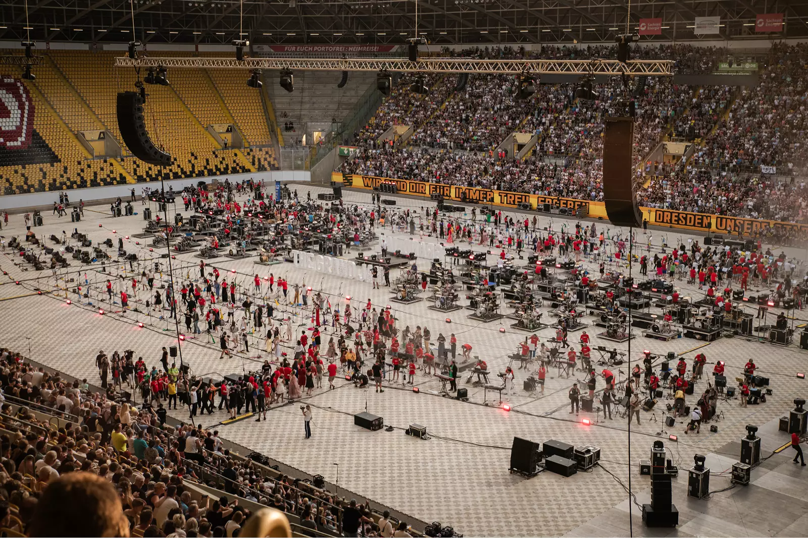 Drezno, Niemcy – Ponad 1000 muzyków występowało dla 15 000 fanów na stadionie Rudolf-Harbig-Stadion, w ramach wydarzenia, które organizatorzy określili jako największe jak dotąd wdrożenie systemu GTX firmy TT+ Audio w Niemczech. Grand Jam 2025 połączył wszystkich muzyków na dwóch scenach, umieszczonych na trybunach zachodniej i głównej, tworząc jedną ogromną orkiestrę, która urzekła i poruszyła publiczność.