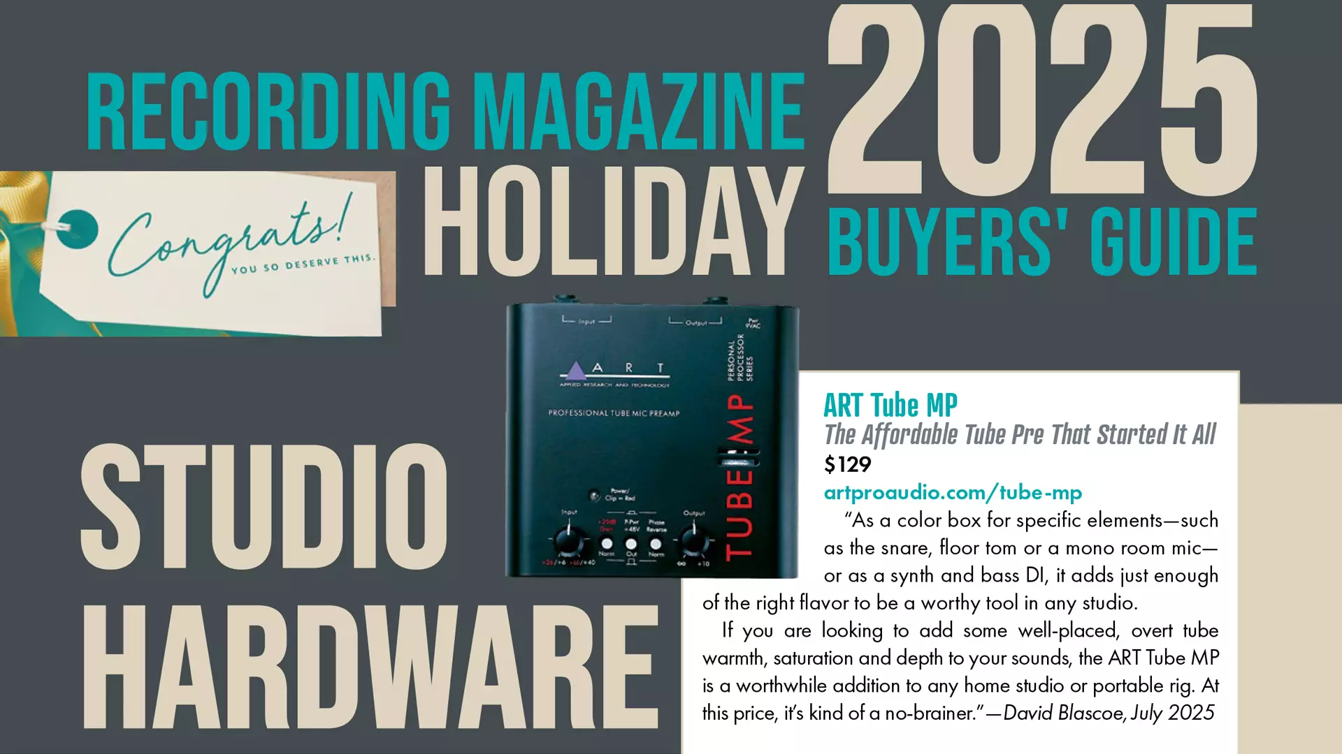 ART Tube MP został wyróżniony w Recording Magazine jako przystępny cenowo przedwzmacniacz lampowy, który stał się punktem wyjścia dla wielu muzyków.