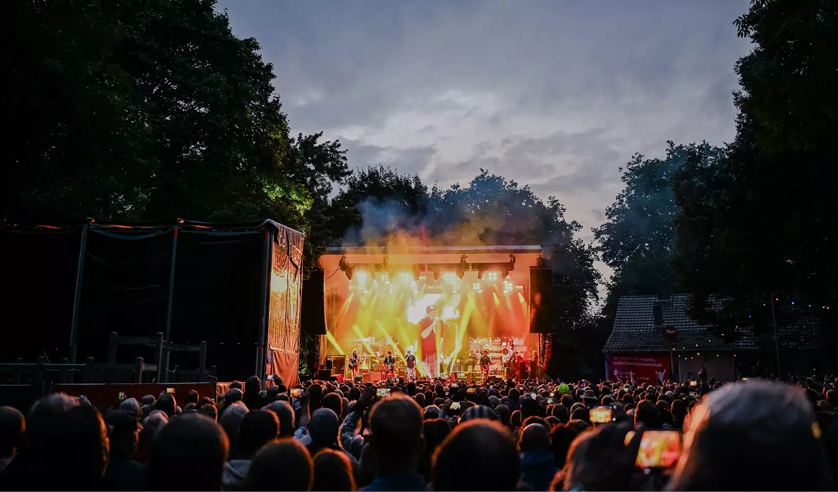 Wieczór otworzył Mrs. Greenbird, folkowo-popowy duet z Kolonii, którego niezapomniane piosenki i dwugłosowe wokale stworzyły nastrój przed występem gwiazdy wieczoru. Koncert był częścią większej serii koncertów plenerowych w parku, zainicjowanej przez Christiana Krämera, Wolfganga Treppera i Guido Jansena. Występ był możliwy między innymi dzięki wsparciu Holgera Hübnera, współzałożyciela Wacken Open Air, który pomógł nawiązać kontakt z zespołem.