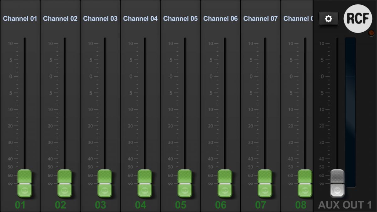 Dzięki aplikacji RCF MyRemote artysta może regulować swój tor AUX według swoich potrzeb z swojego urządzenia połączonego z mikserem.