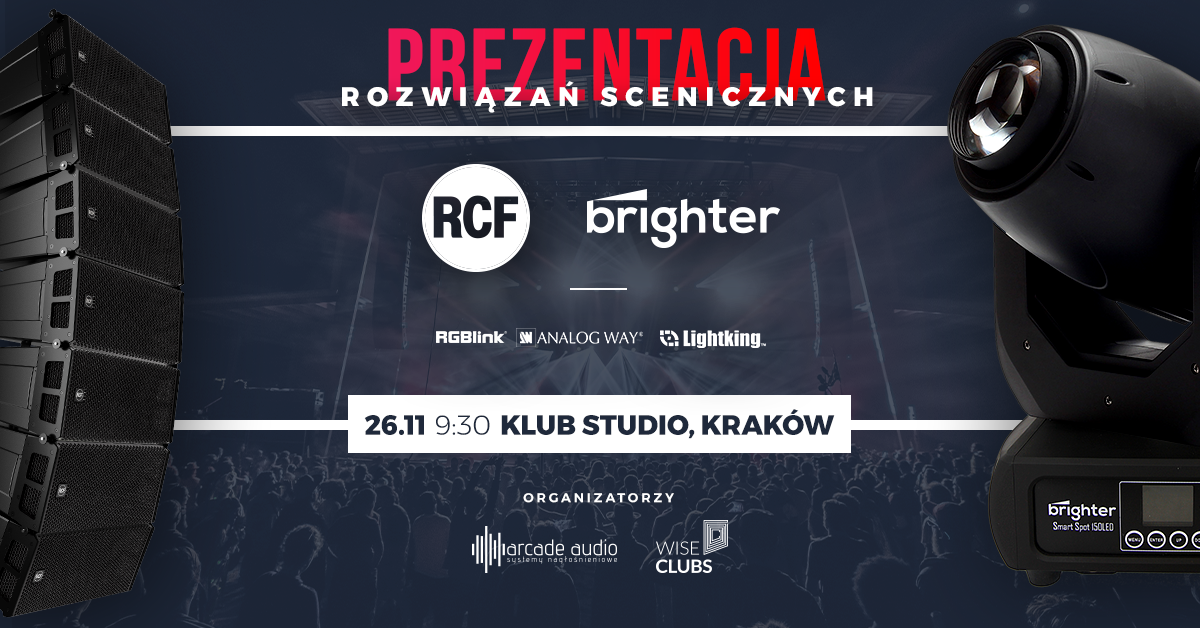 26'ego listopada w Krakowskim Klubie Studio odbędzie się prezentacja rozwiązań scenicznych podczas której zaprezentowane zostaną rozwiązania sceniczne i nowości w zakresie oświetlenia, nagłośnienia i multimediów. Swoje rozwiązania przedstawią marki: