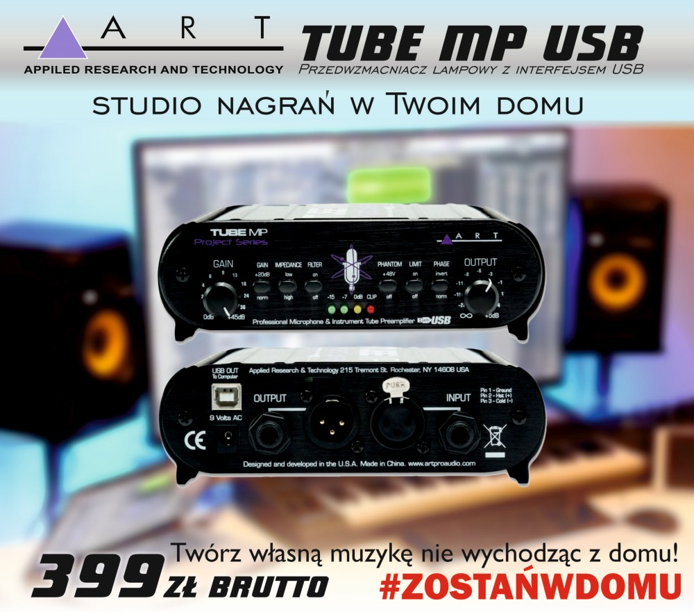 ART Tube MP USB - to niedrogi przedwzmacniacz lampowy (wyposażony w Lampę 12AX7A) z interfejsem USB, który w łatwy i szybki sposób zamieni Twój dom w studio nagrań.