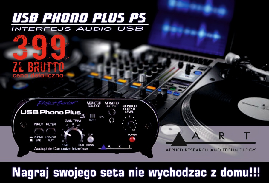 USBPhonoPlus Project Series firmy ART to prosty w obsłudze interfejs, dzięki któremu prześlemy różne analogowe sygnały (gramofon, magnetofon, CD itp.) do naszego komputera za pomocą standardowego złącza USB, zyskując dużo lepszą jakość niż w przypadku zintegrowanych kart muzycznych, nie powodując czystek w naszym portfelu. Wejścia analogowe posiadają przełącznik poziomu: Liniowy/Gramofonowy, a potencjometr wzmocnienia umożliwia dostosowanie poziomu sygnału wejściowego dla różnych źródeł sygnału. Przedwzmacniacz wyposażony jest także w filtr górno-przepustowy, a nisko-szumowy układ przedwzmacniacza ściśle odpowiada standardowi RIAA. Interface wyposażony został także w cyfrowe wejście i wyjście optyczne w formacie TOSLINK oraz wejście cyfrowe w formacie S/PDIF (RCA)