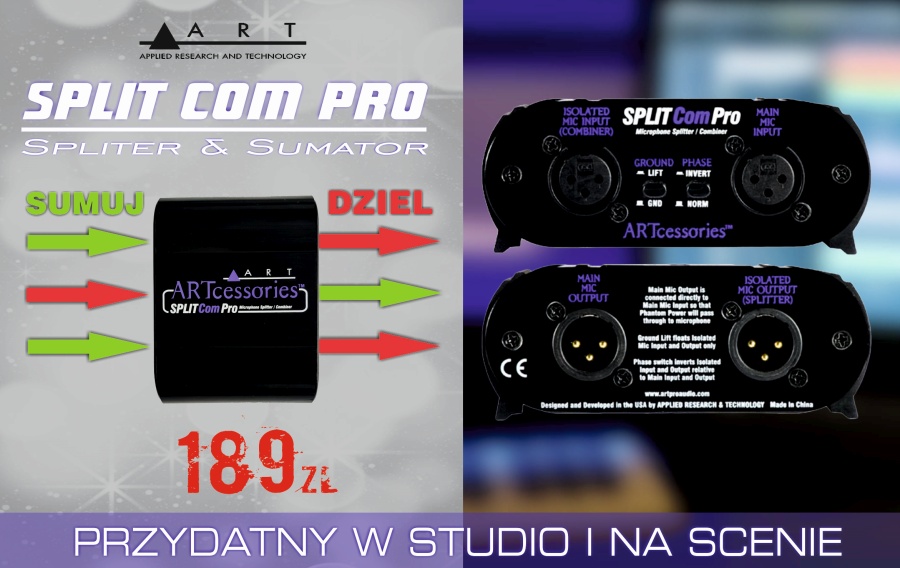 SplitComPro może działać jako spliter, który rozdzieli nam sygnał mikrofonowy, a także jako sumator umożliwiający podpięcie dwóch mikrofonów.