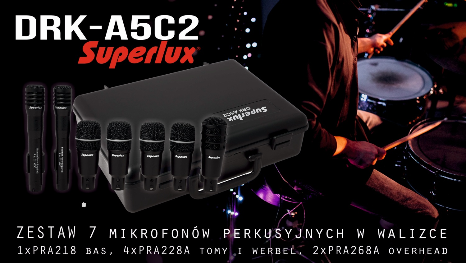 Firma Superlux nie zapomniała o perkusistach i to specjalnie dla nich stworzyła bardzo dobrze brzmiący, a zarazem portfela nierujnujący zestaw 7-miu mikrofonów o nazwie DRK-A5C2 z pomocą, których Wasze "gary" zabrzmią jeszcze lepiej i głośniej.