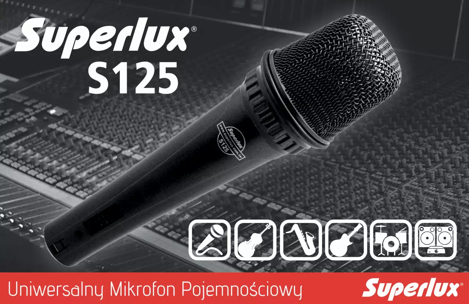 Na pierwszy rzut oka Superlux S125 wygląda jak zwykły mikrofon wokalny - nic bardziej mylnego. Ten być może skromnie wyglądający sprzęt posiada mnóstwo luksusowych cech znanych z dużo droższych konstrukcji. Grill mikrofonu posiada metalowy pop-filtr, który doskonale radzi sobie ze wszystkimi głoskami wybuchowymi i przypadkowymi podmuchami wiatru. Według specyfikacji mikrofon przenosi pasmo od 20 Hz do 20 kHz. Ponadto S125 posiada tłumik -10 dB oraz filtr dolnozaporowy nastrojony na 150 Hz. Mikrofon wykonany jest w całości z metalu. Solidna konstrukcja w połączeniu z licznymi funkcjami sprawia, że S125 może współpracować z praktycznie każdym źródłem dźwięku. Utwierdza nas w tym wysoka odporność na poziom ciśnienia akustycznego, która wynosi 148 dB. Aż trudno uwierzyć, że w tak budżetowym mikrofonie producent postanowił zastosować pozłacane elementy łączące kapsułę i części elektroniczne.
