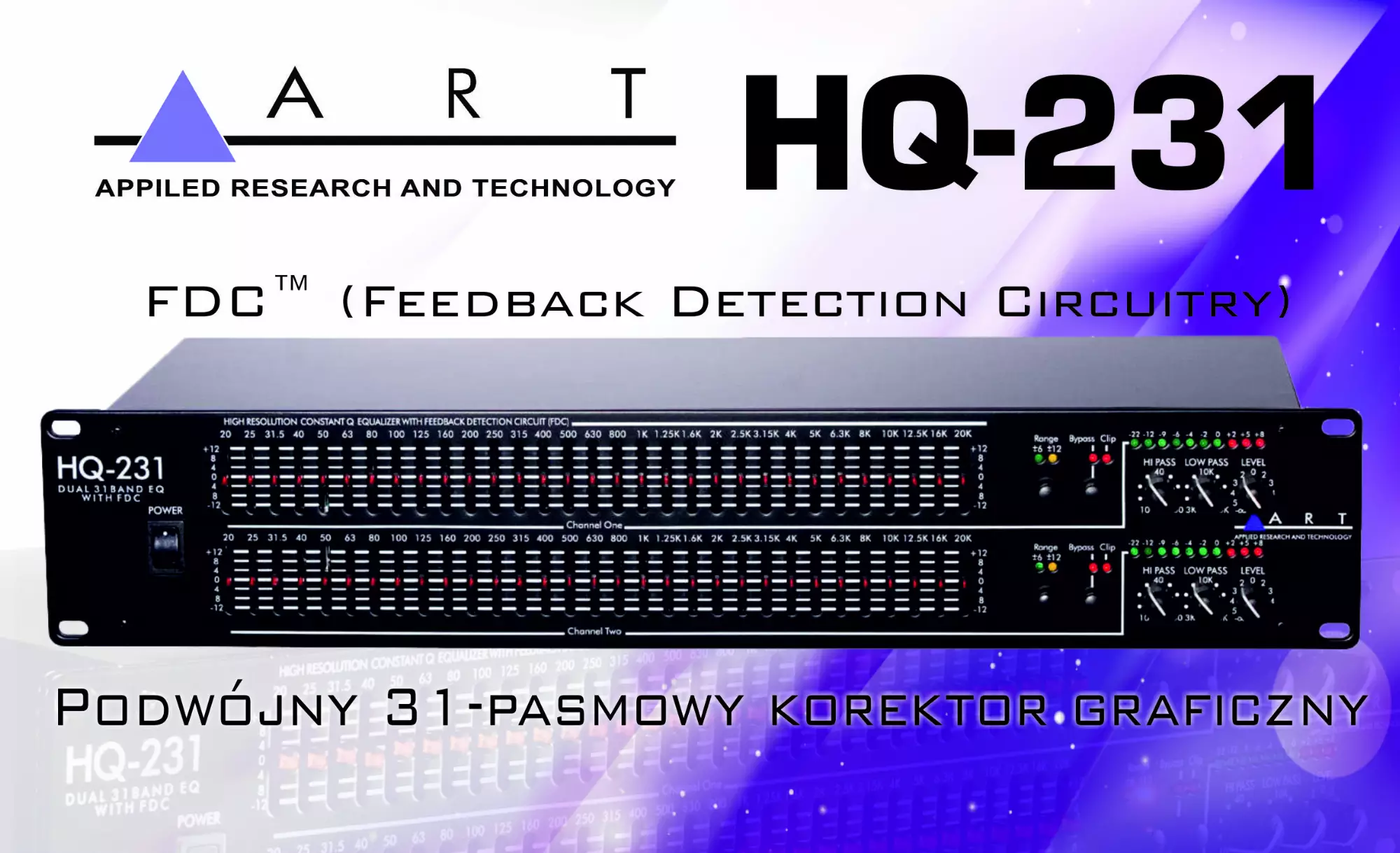 Zastosowany w HQ231 układ FDC™ (Feedback Detection Circuitry - zaprojektowany i opracowany przez ART Engineering) natychmiast zapala diodę LED na faderze odpowiadającym pasmu EQ o największym sygnale. Wskaźniki LED mogą natychmiast pokazać, które pasmo odpowiada częstotliwości sprzężenia, pozwalając inżynierowi dźwięku na redukcję wzmocnienia w tym paśmie, aby szybko wyeliminować sprzężenie, przy jednoczesnym minimalnym wpływie na brzmienie materiału programu na żywo.