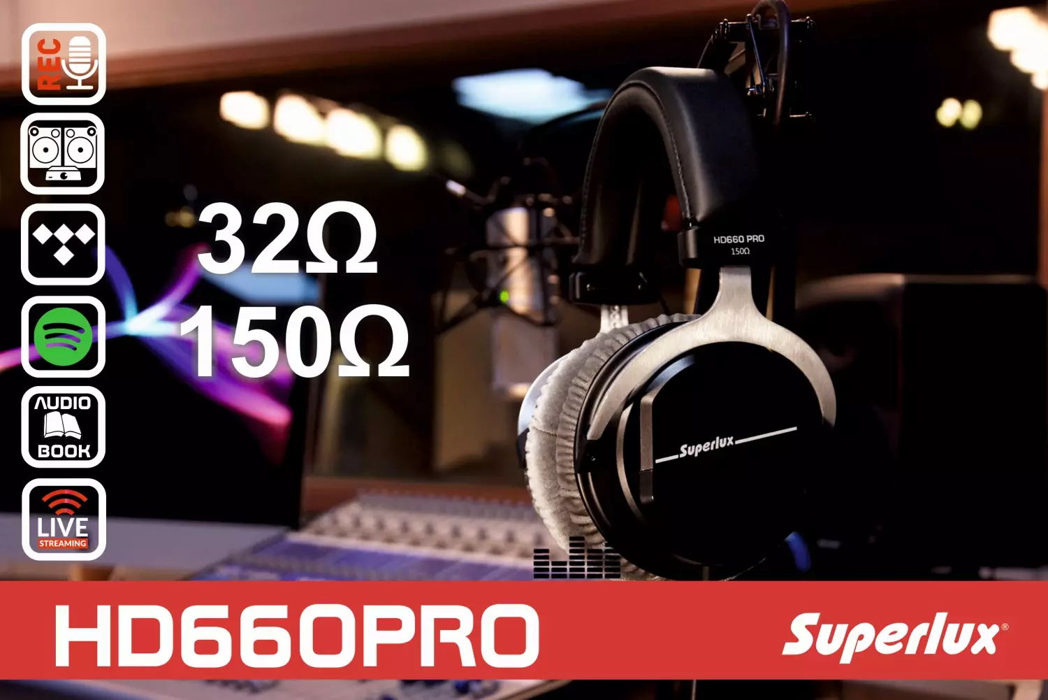 Wysoka jakość wykonania oraz dźwięku słuchawek HD660PRO od firmy Superlux sprosta wymaganiom i zadowoli każdego użytkownika. Do wyboru mamy dwie wersje impedancji 32/150Ω dzięki czemu doskonale sprawdzą się zarówno do codziennego słuchania, jak również do tworzenia muzyki i pracy w warunkach klubowych lub studyjnych. Dzięki ciekawemu wyglądowi słuchawki będą się świetnie prezentować w każdym miejscu.