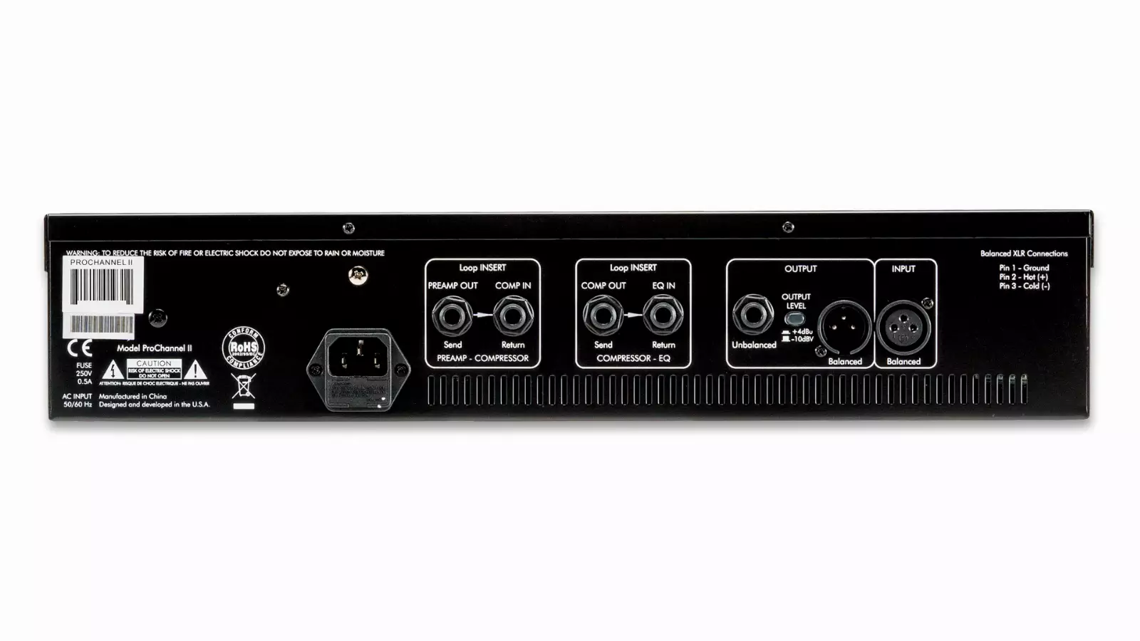 Na tylnim panelu mamy symetryczne wejścia i wyjścia XLR, niesymetryczne Jack, oraz 2 punkty insertowe na jack’ach, którymi możemy wpiąć inne urządzenia pomiędzy dowolne sekcje naszego Pro Channel’a.