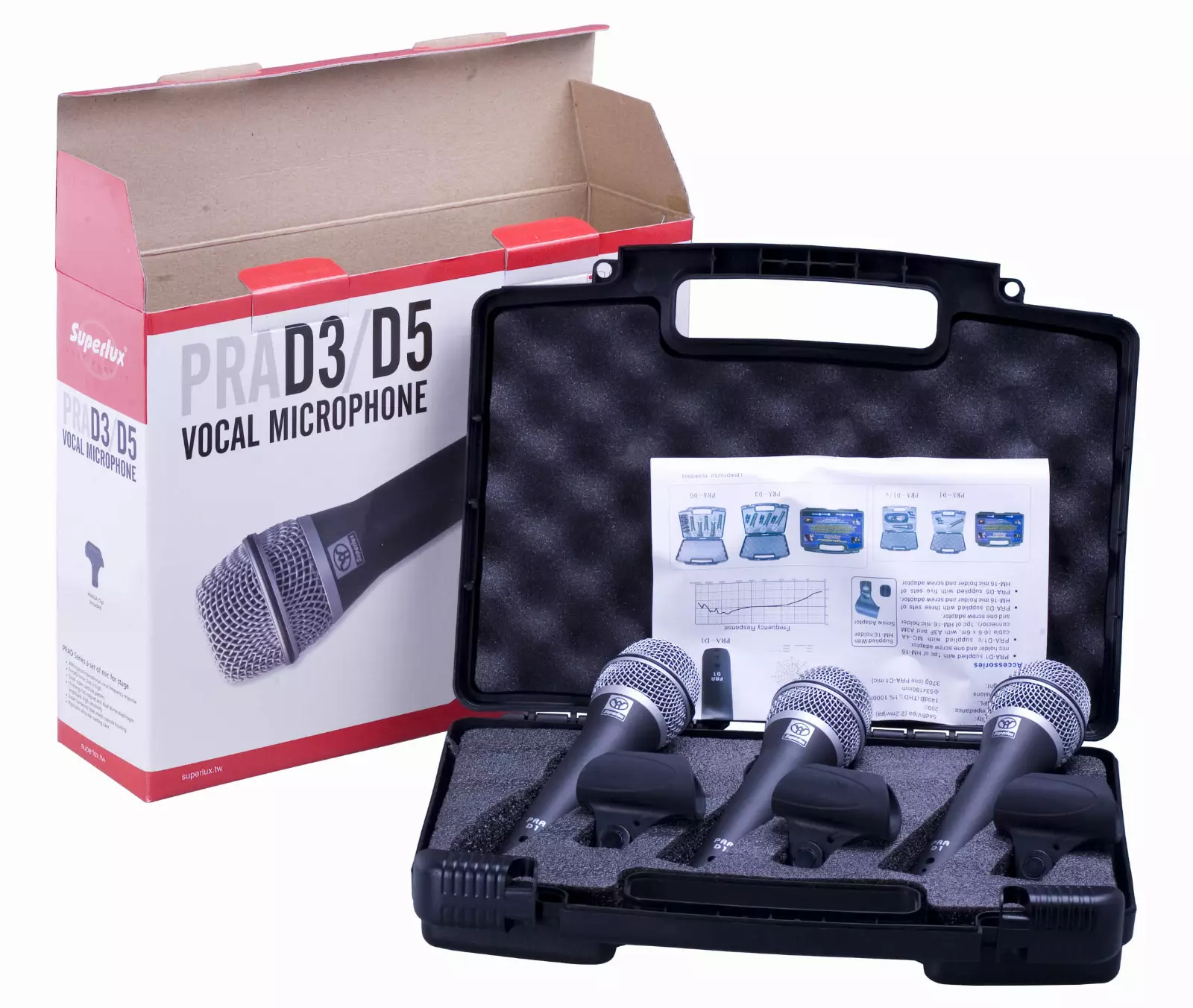 Zestaw 5 mikrofonów dynamicznych PRA-D1 do zastosowań estradowych.