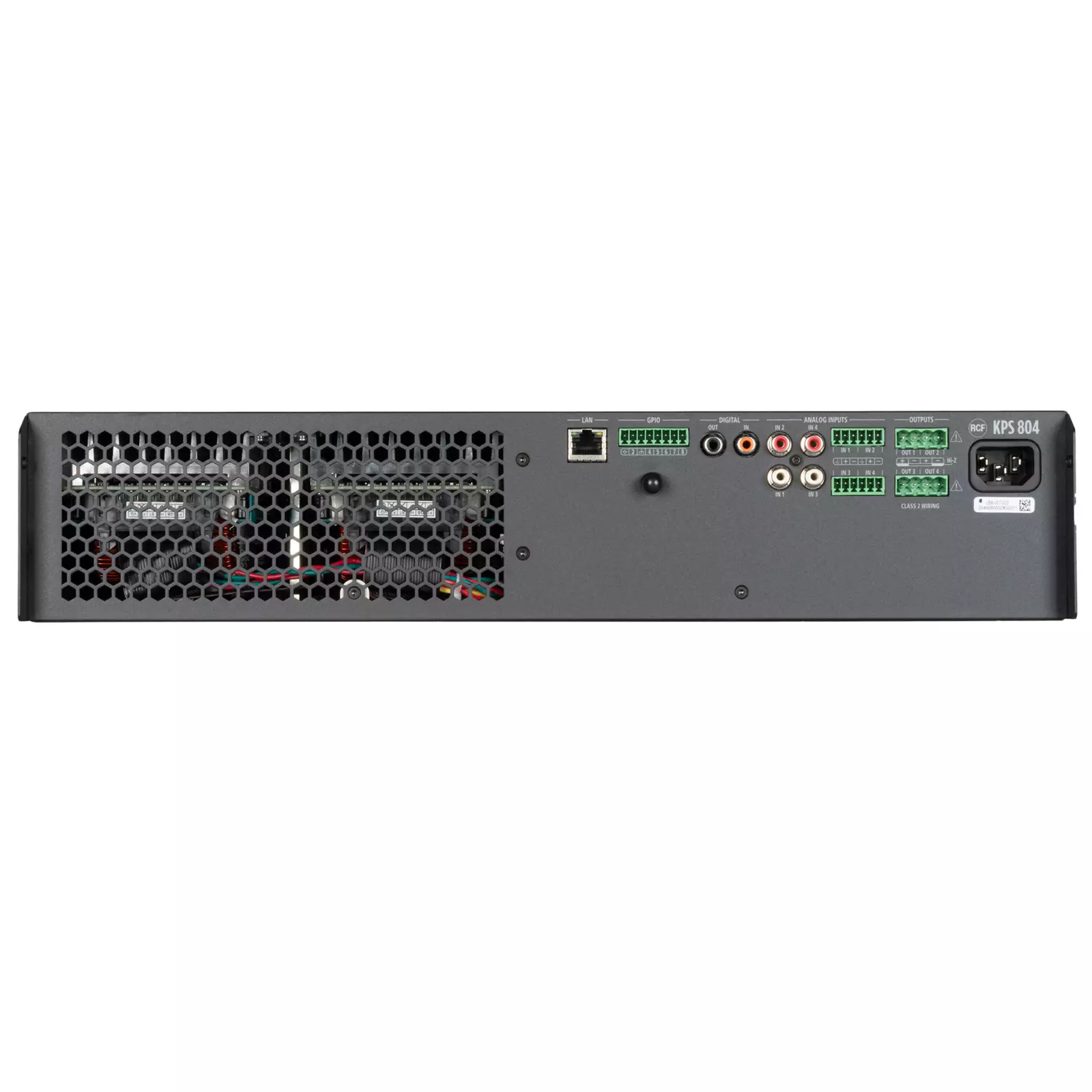 KPS 804 to profesjonalny 4-kanałowy wzmacniacz o łącznej mocy wyjściowej 3200 W, przeznaczony do wymagających instalacji audio, w których niezbędna jest elastyczność, niezawodność i zaawansowane sterowanie. Wyposażony we wzmacniacz klasy D i zintegrowany procesor DSP, zapewnia kompletne i dokładne przetwarzanie sygnału oraz intuicyjną konfigurację za pomocą oprogramowania RDSpace firmy RCF. Biblioteka ustawień wstępnych głośników RCF upraszcza konfigurację i zapewnia optymalną wydajność. Natywna łączność Ethernet sprawia, że idealnie nadaje się do systemów rozproszonych z niezależną kontrolą stref, a zintegrowany bezprzewodowy punkt dostępowy umożliwia bezpośrednie połączenie z urządzeniami mobilnymi.