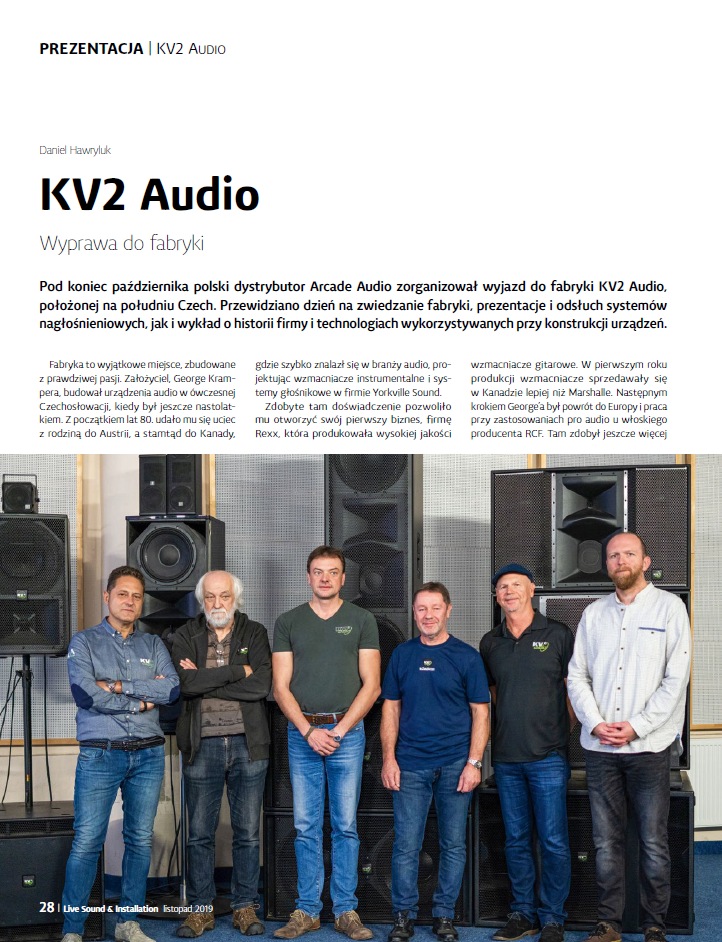 Pod koniec października polski dystrybutor Arcade Audio zorganizował wyjazd do fabryki KV2 Audio, położonej na południu Czech. Przewidziano dzień na zwiedzanie fabryki, prezentacje i odsłuch systemów nagłośnieniowych, jak i wykład o historii firmy i technologiach wykorzystywanych przy konstrukcji urządzeń.